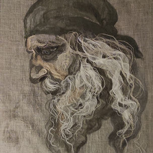 Це, насамперед, графічний підхід з неймовірними вигинами текстильної сітки бинту, що дає ефект глибинного простору, пластика чітких ліній ниток.